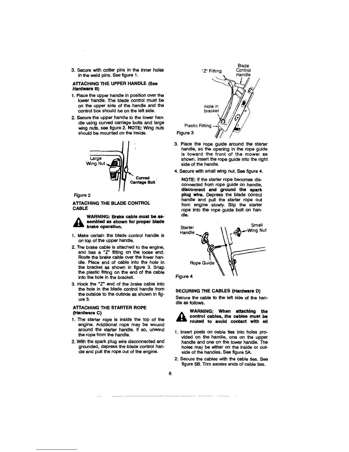 Cadet 106 - Control and Cable Assembly; Attaching Blade Control Cable; Attaching Starter Rope; Securing Cables
