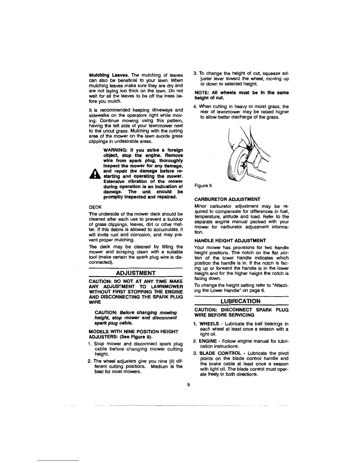 Cadet 106 - Maintenance and Adjustments; Deck Cleaning; Handle Height Adjustment