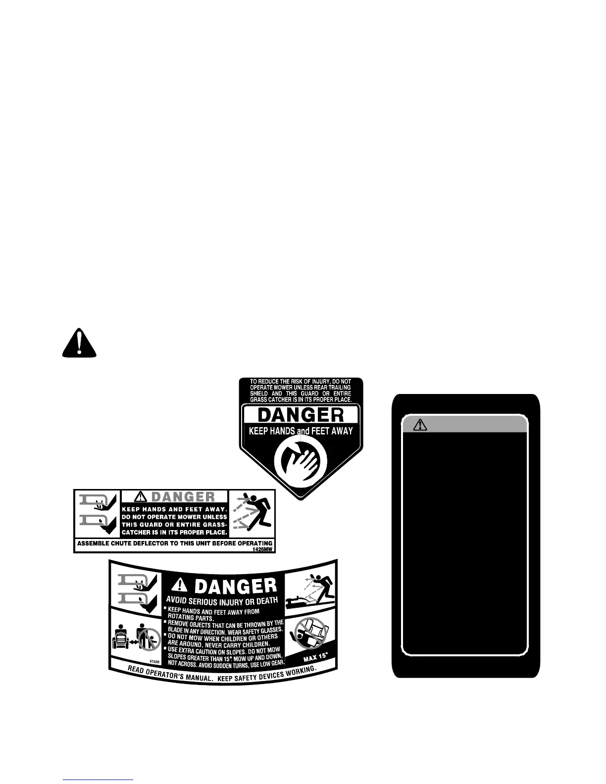 BEFORE PLACING HANDS OR FEET NEAR BLADE(S).