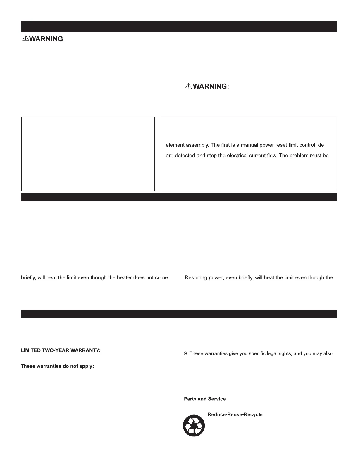 Note that resetting the manual power reset limit control may not restore heater operation if a severe over-temperature