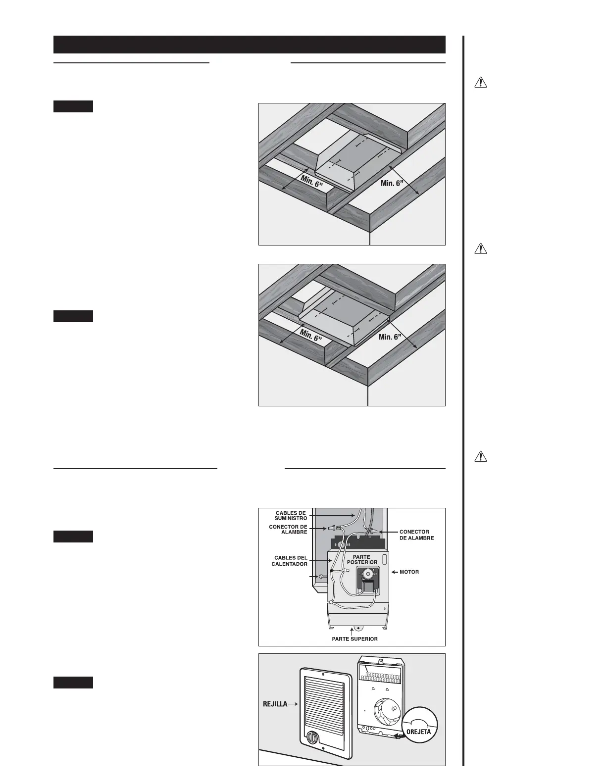 pulgadas desde todas las superficies adyacentes. Sin