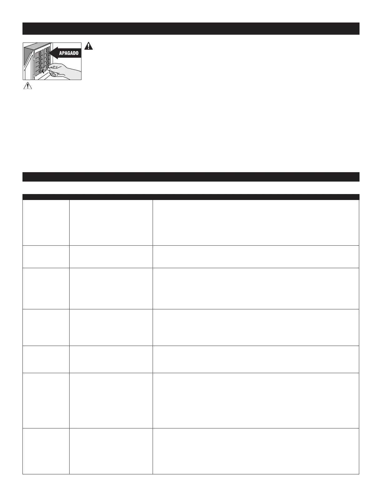 ¡ADVERTENCIA! Desconecte la electricidad en el tablero del panel eléctrico