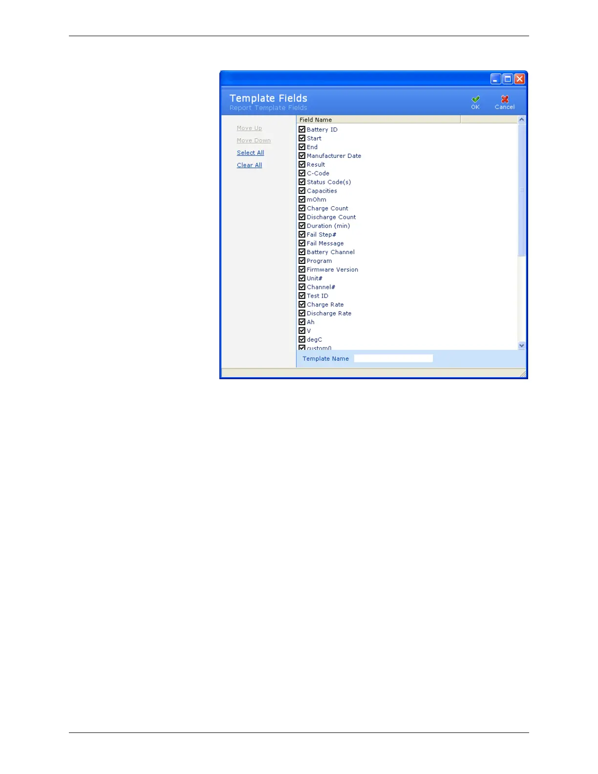 the report template, click Select All; to exclude all fields from