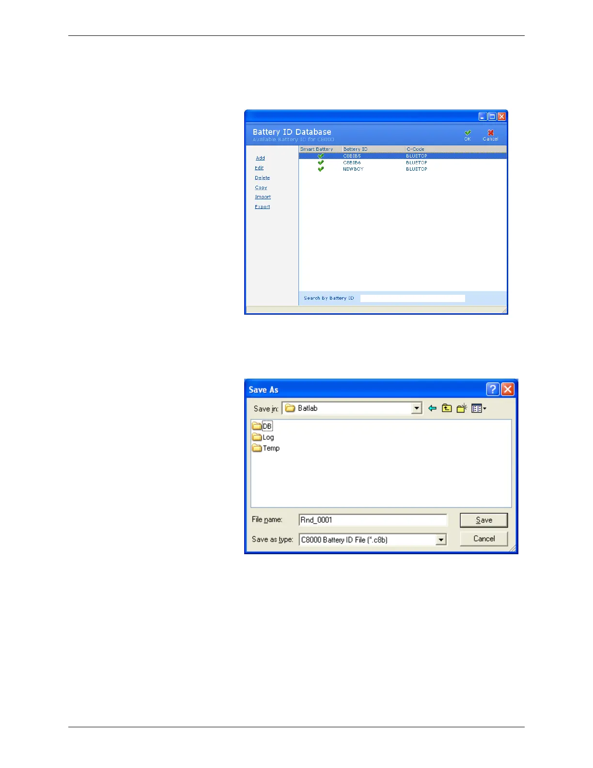 1. From the Database menu, click Battery ID. The Battery ID