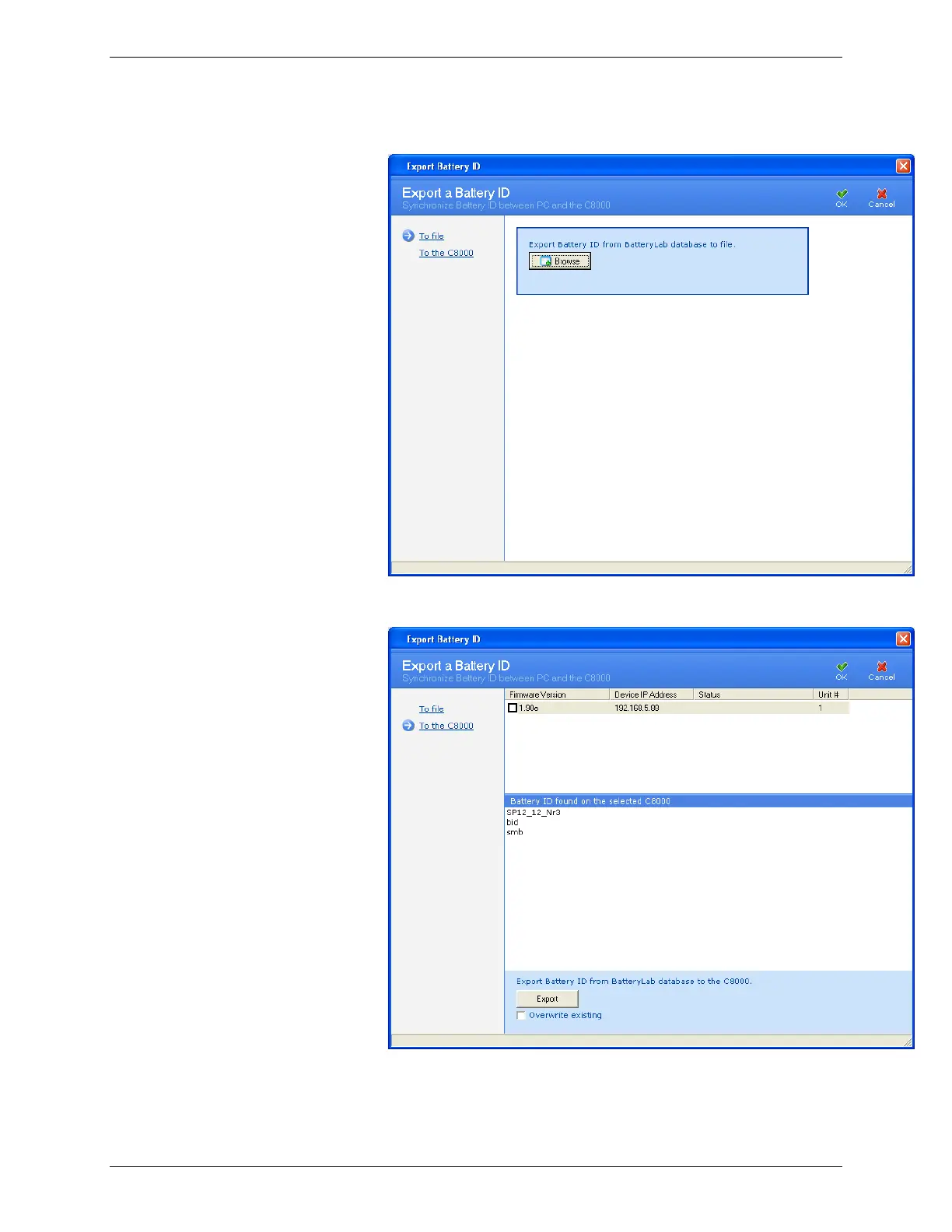 3. Click Export. The Export Battery ID window appears.
