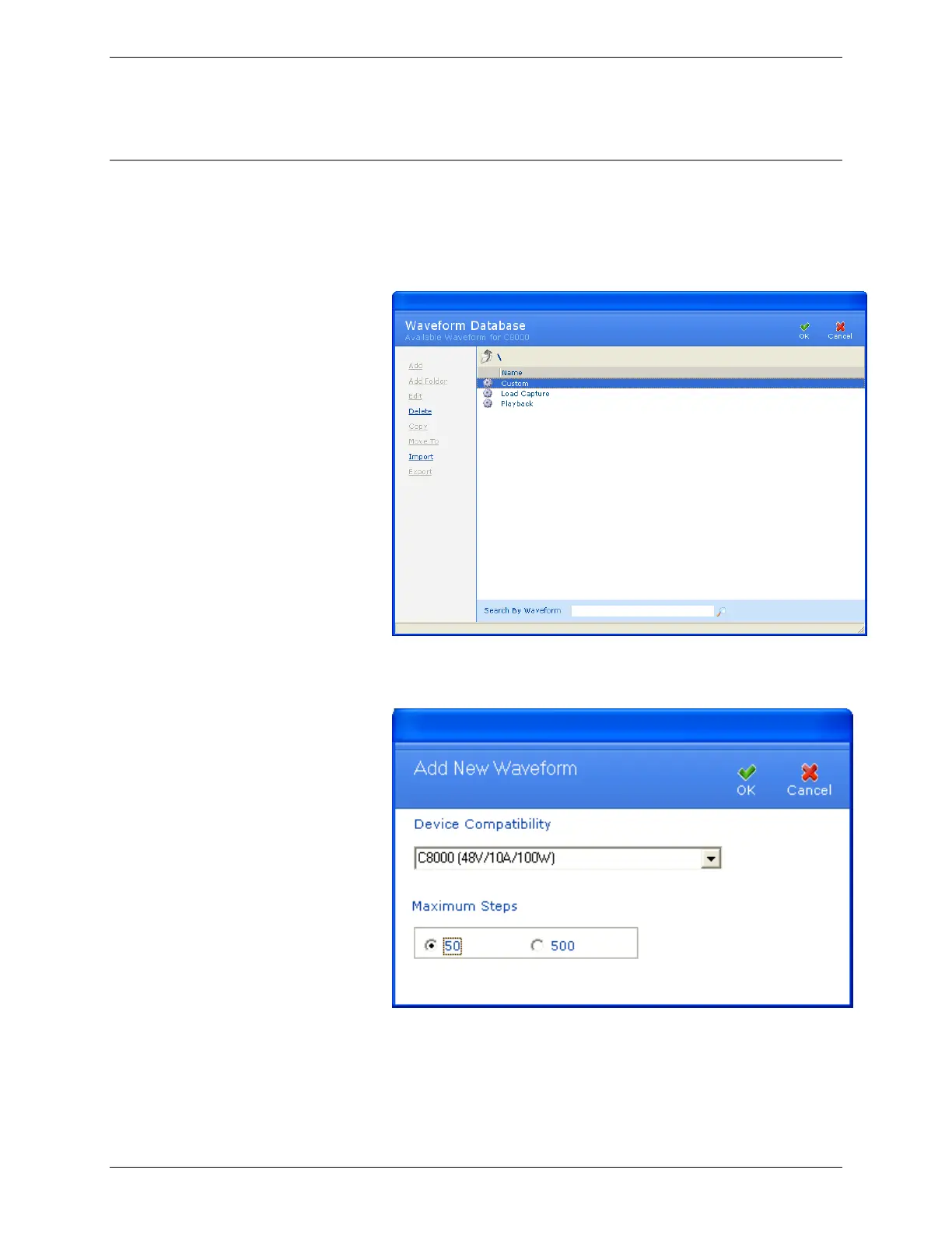 The Add New Waveform window is used to configure the