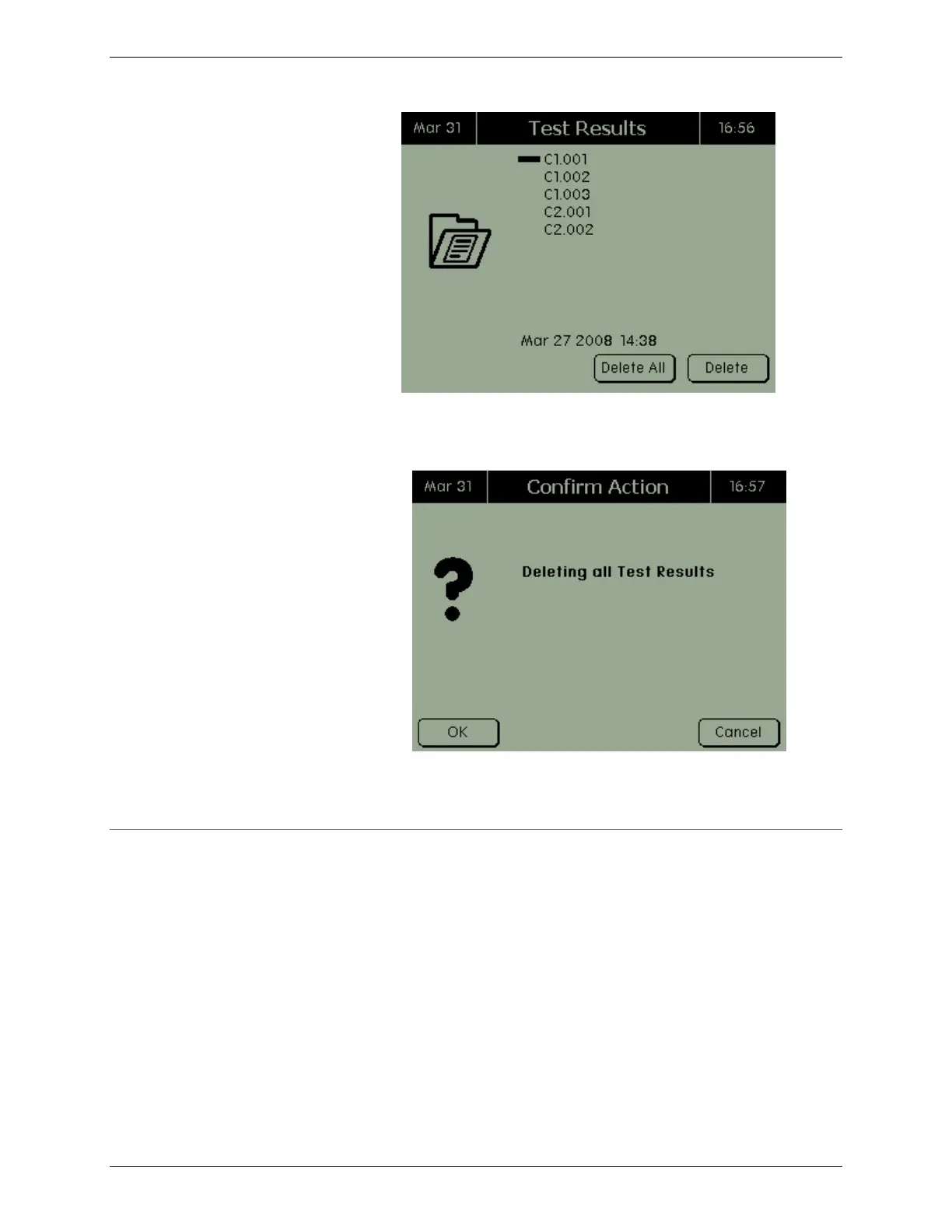 2. Press, "DELETE ALL." The Confirm Action screen appears.