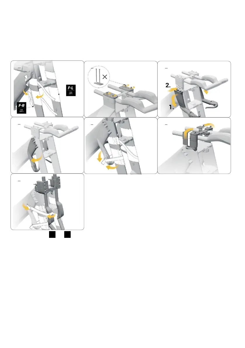5. Secure both base bars to the fork legs with the shorter Velcro straps. (E).