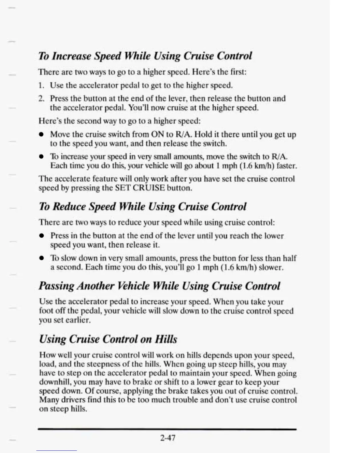 the accelerator pedal. You’ll now cruise at the higher speed.