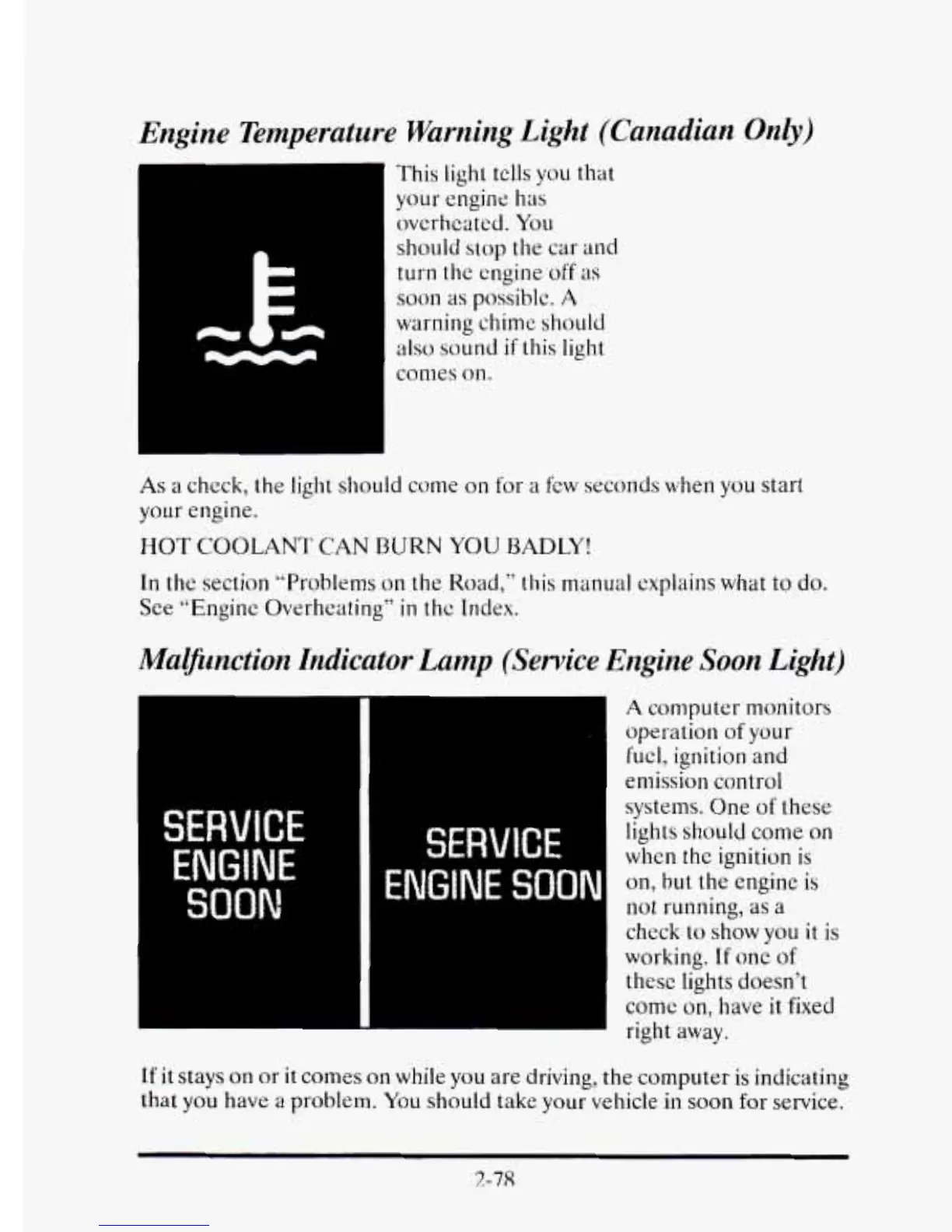 Engine Temperature Warning Light (Canadian