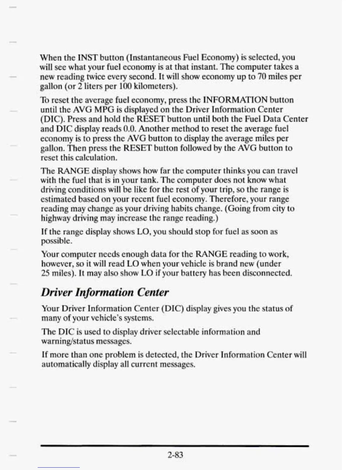 (DIC). Press and hold the RESET button until both the Fuel Data Center