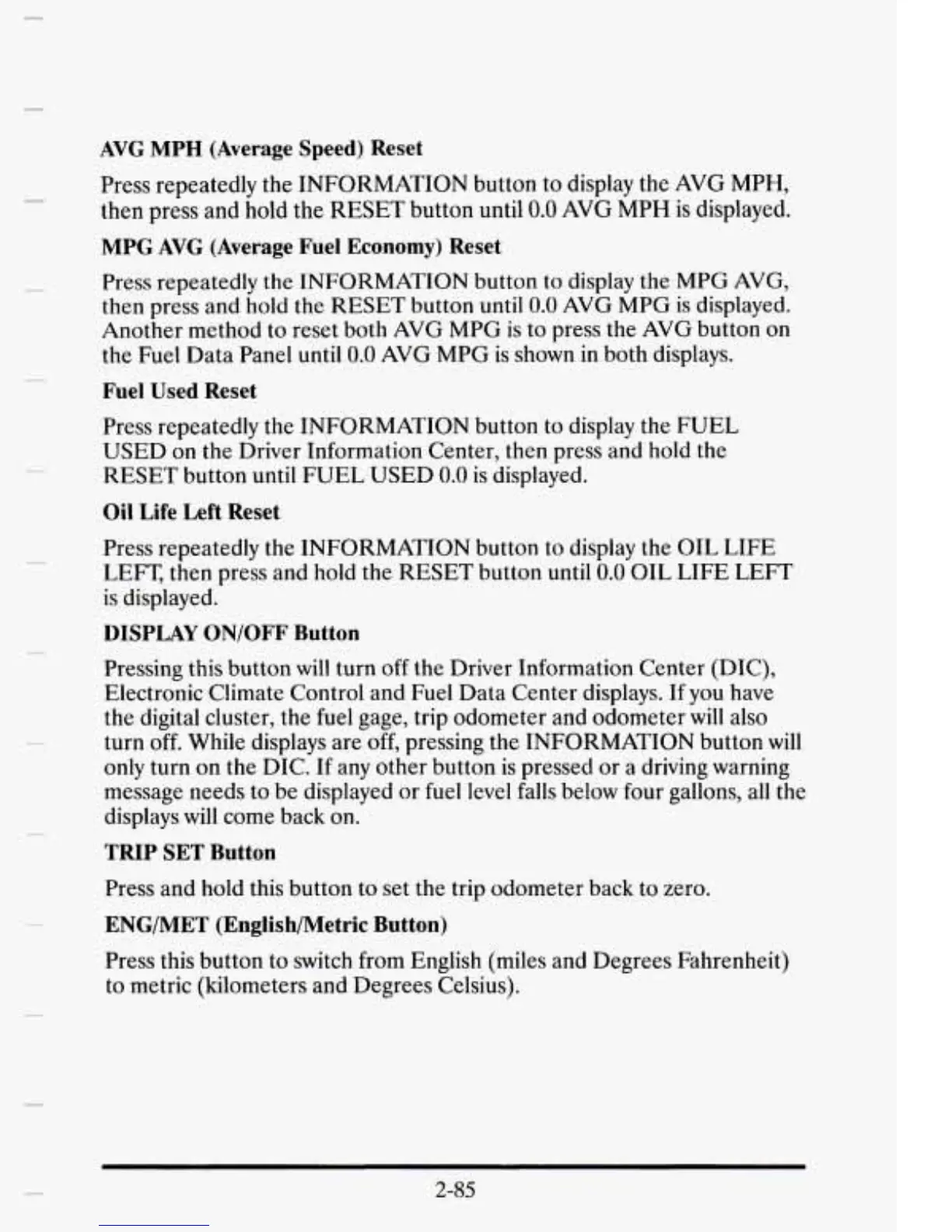 reset both AVG MPG is to press the AVG button