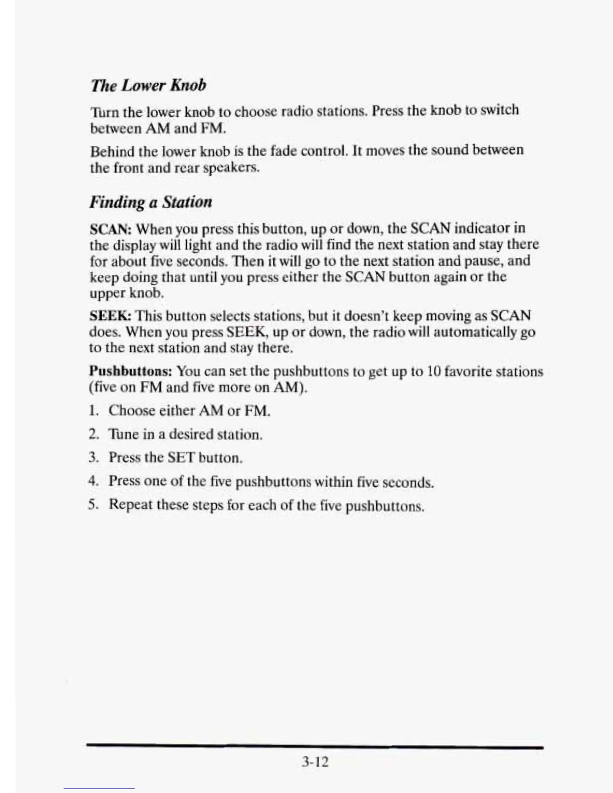 Turn the lower knob to choose radio stations. Press the