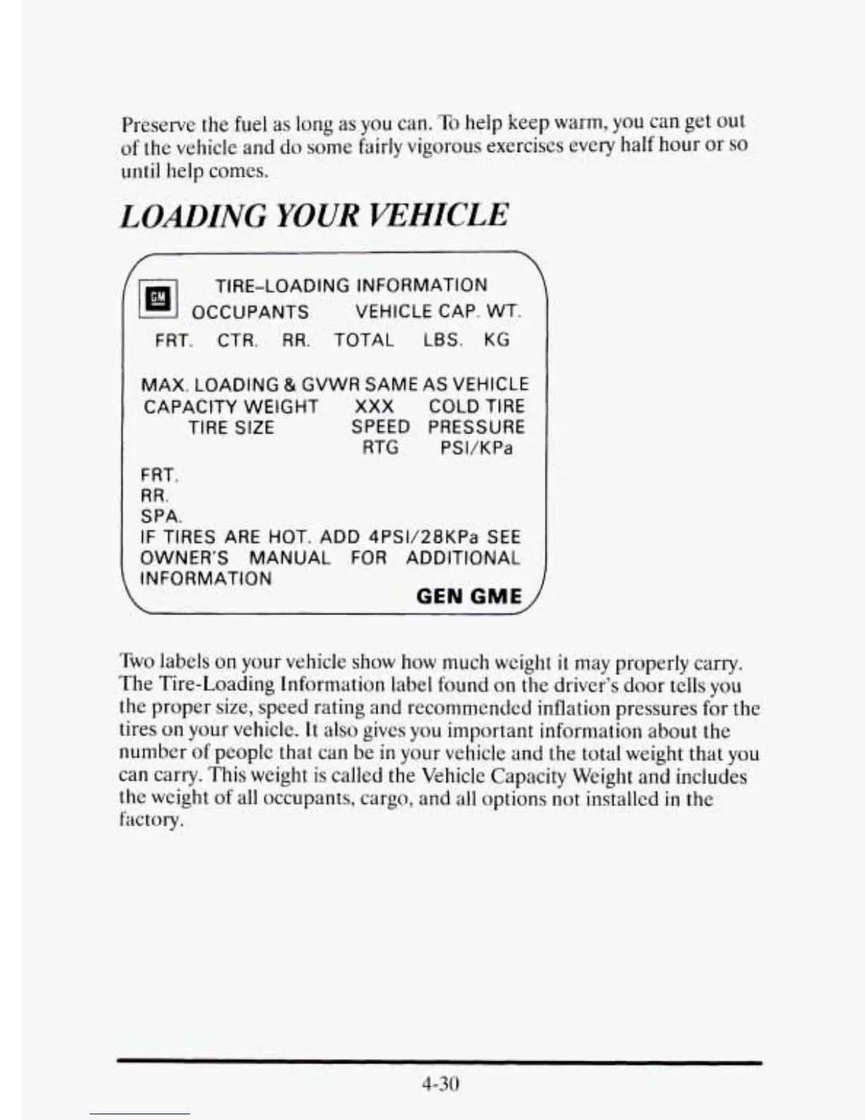TIRE-LOADING INFORMATION