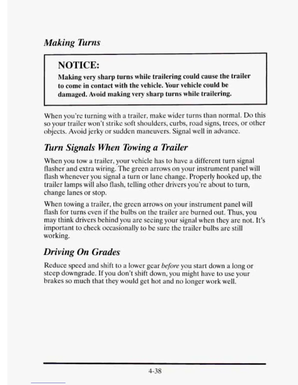 damaged. Avoid making very sharp turns while trailering.