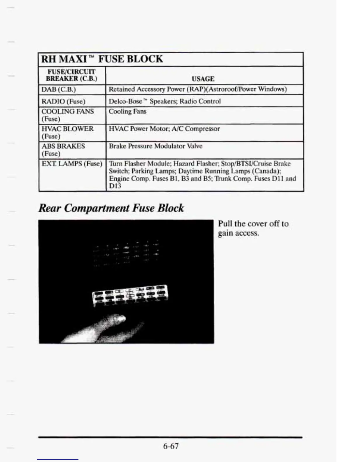 Cadillac 1995 Eldorado - Rear Compartment Fuse Block