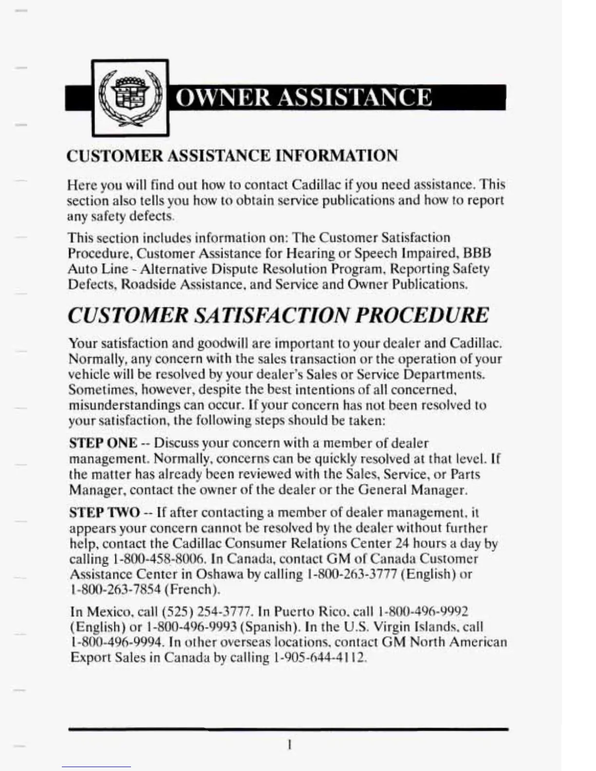 help, contact the Cadillac Consumer Relations Center 24 hours a day by