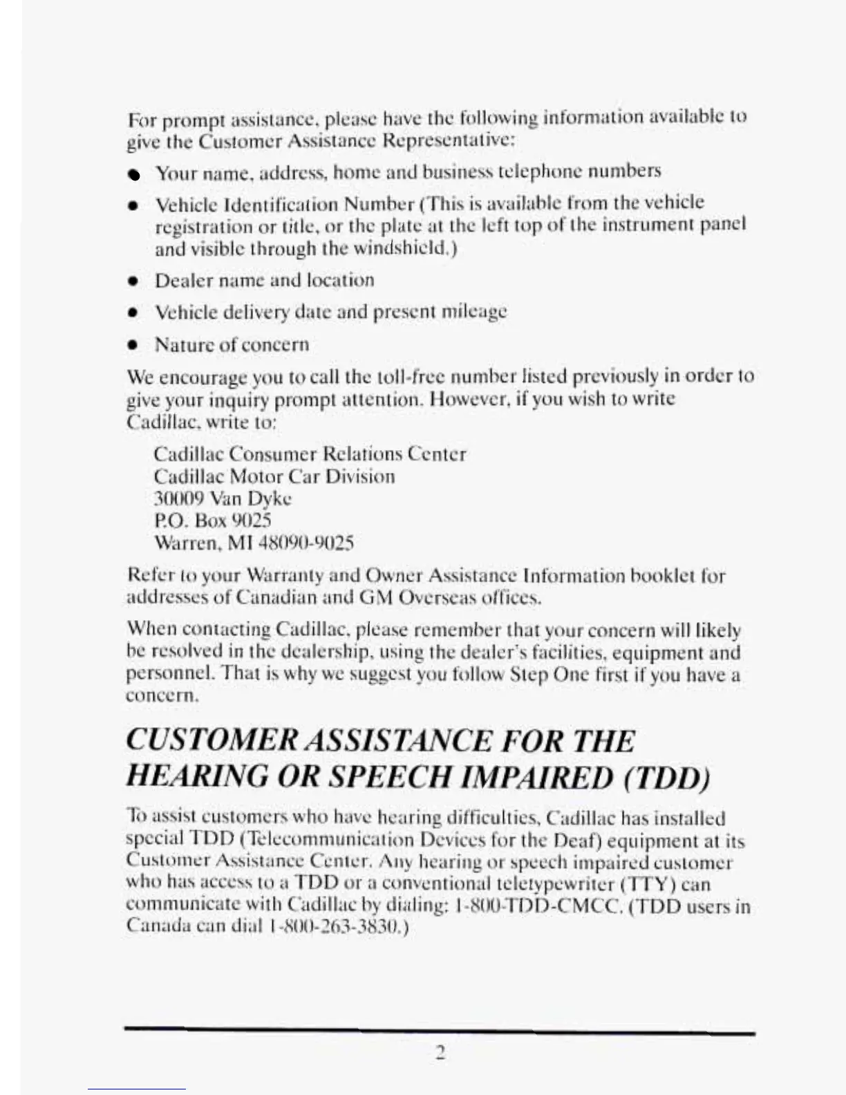 When contacting Cadillac, please remember that yo~~r concern will likely