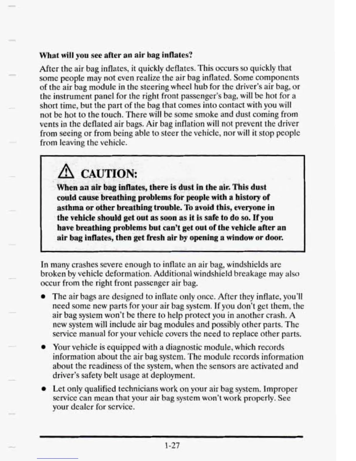 Let only qualified technicians work on your air bag system. Improper