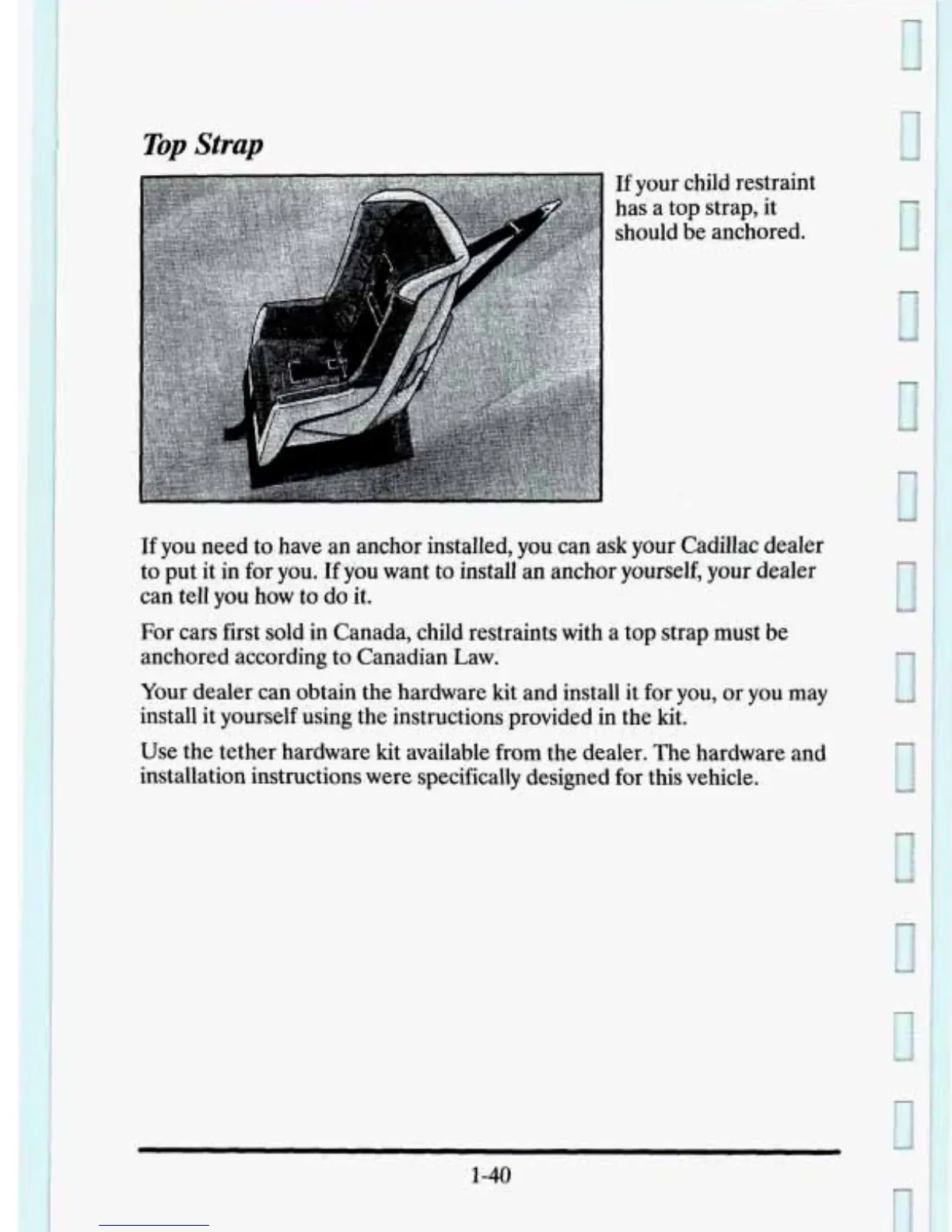 tether hardware kit available from the dealer. The hardware