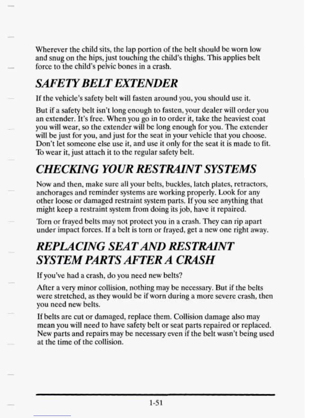 other loose or damaged restraint system parts. If you see anything that