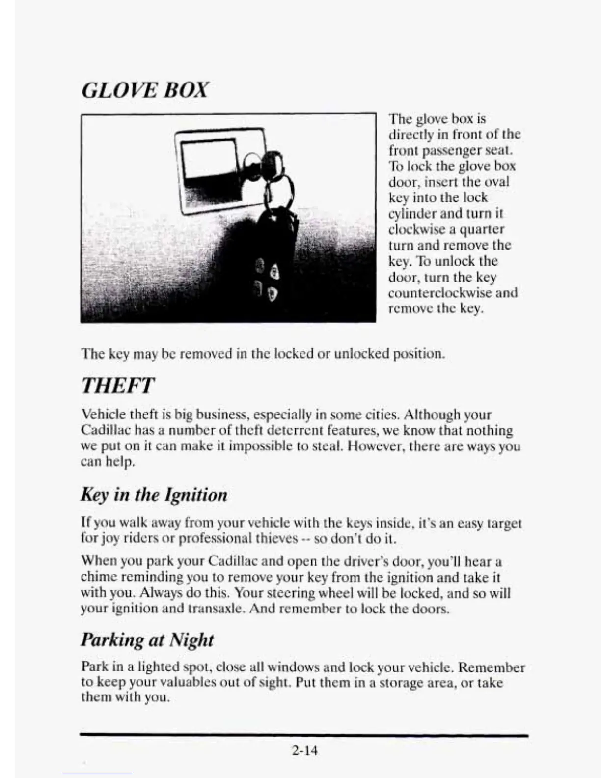 lighted spot, close all windows and lock your vehicle. Remember