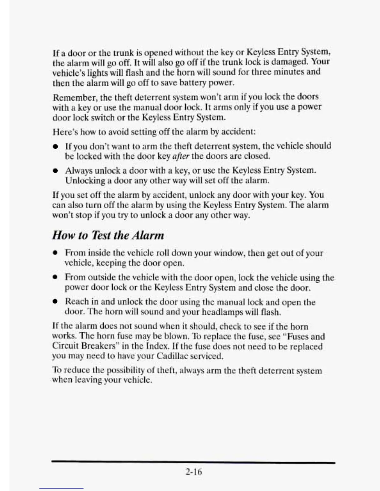 the alarm by using the Keyless Entry System. The alarm