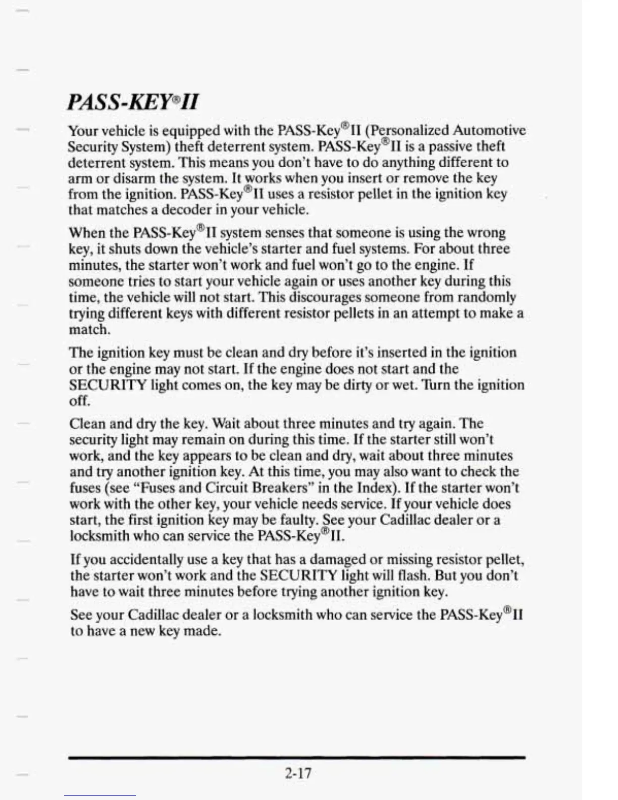 See your Cadillac dealer or a locksmith who can service the PASS-Key@II