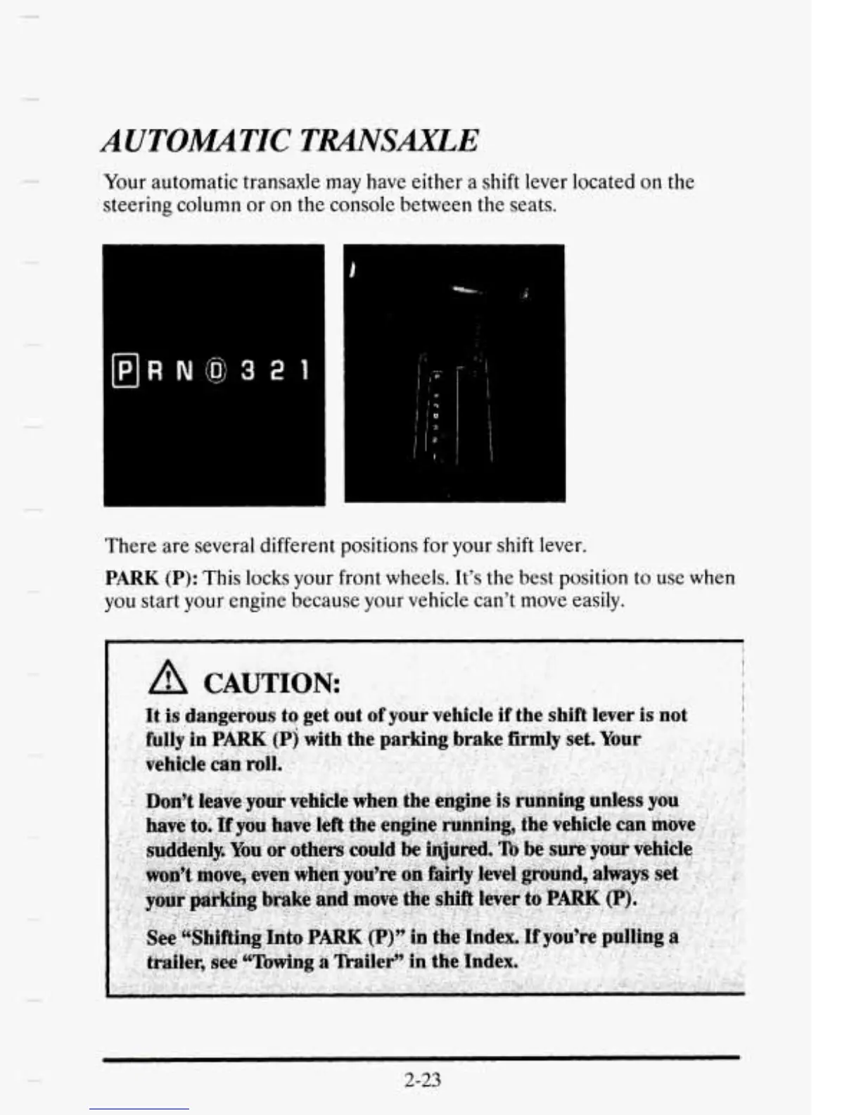 Cadillac 1995 Eldorado - Transaxle, Shifting, and Parking Brake
