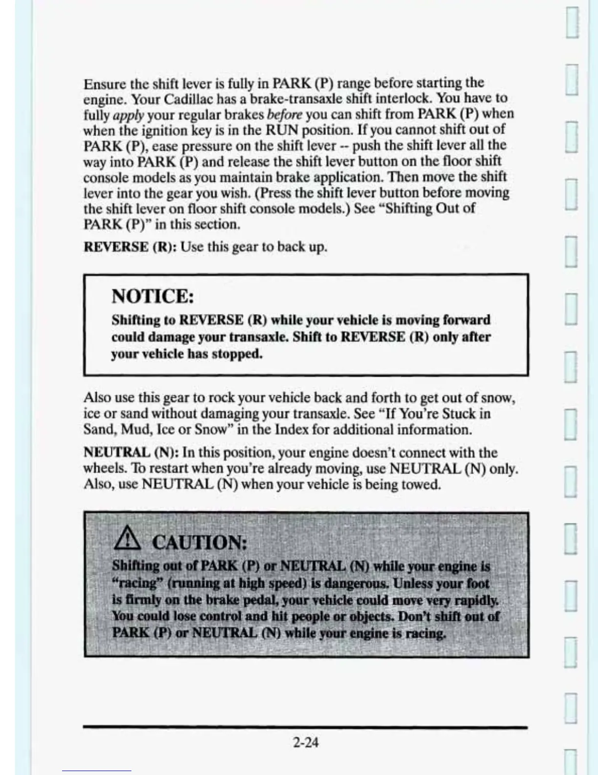 floor shift console models.) See “Shifting Out