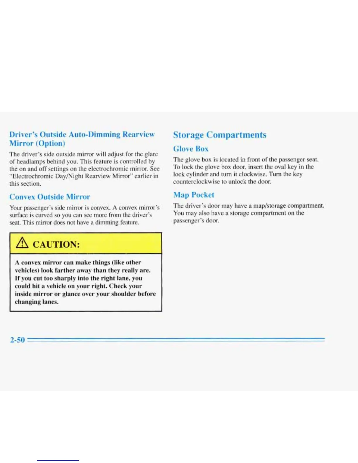 The driver’s side outside mirror will adjust for the glare