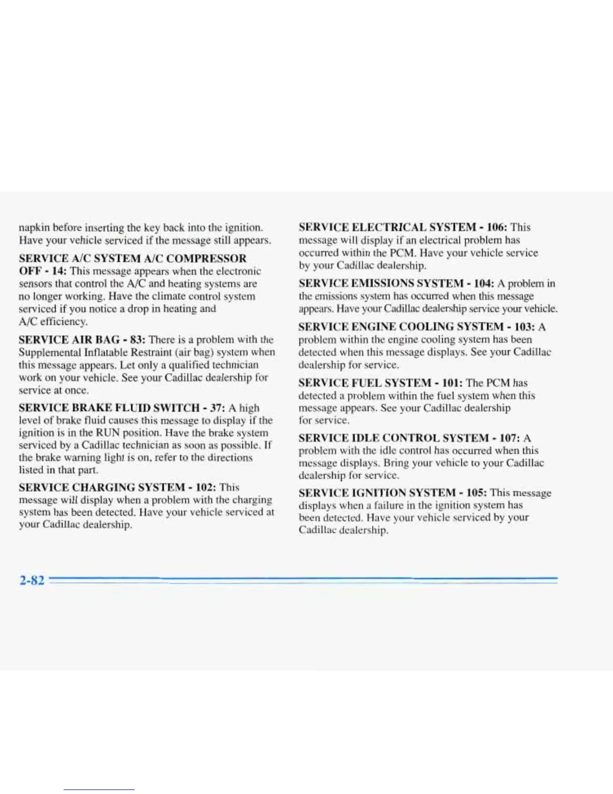 appears. Have your Cadillac dealership service your vehicle.