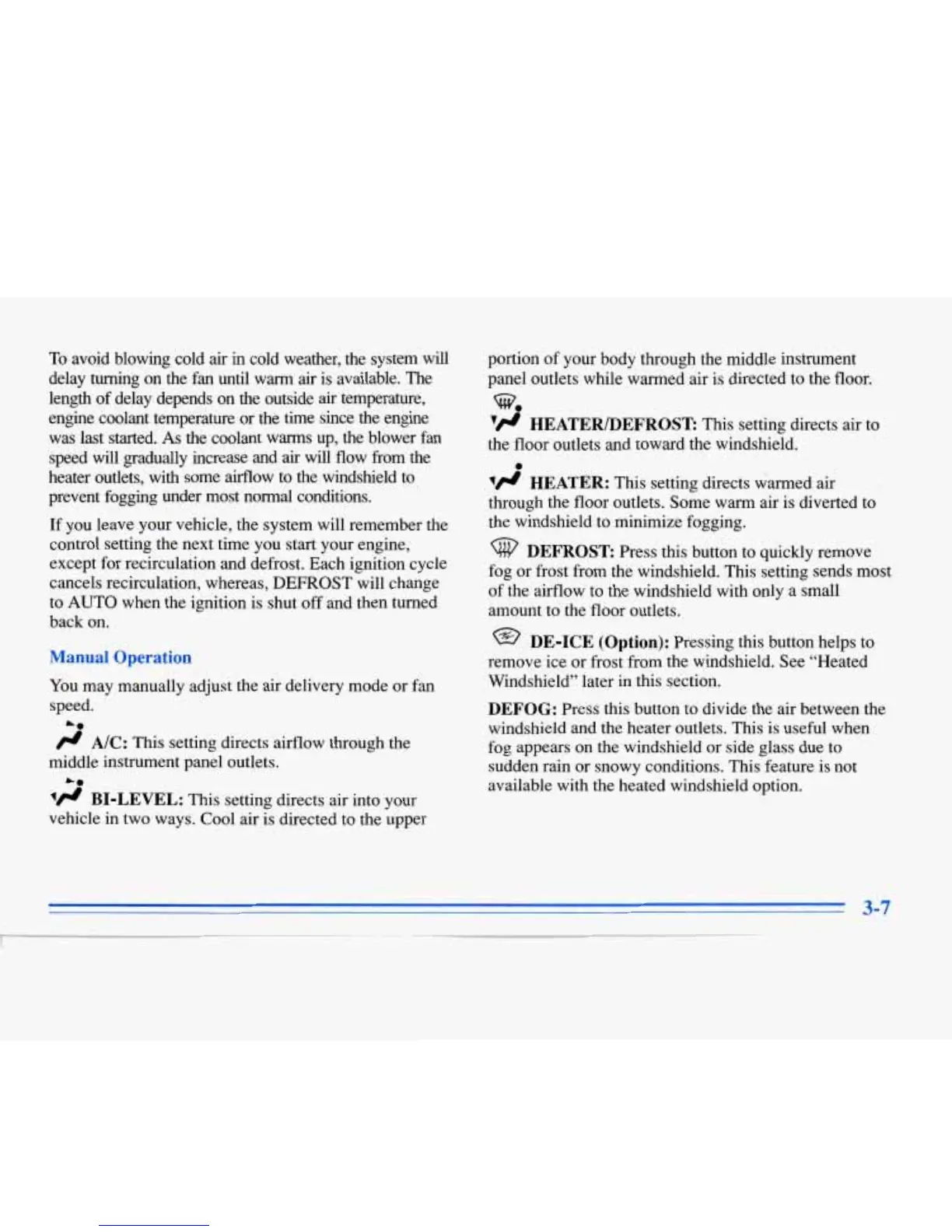 fog or frost from the windshield. This setting sends most