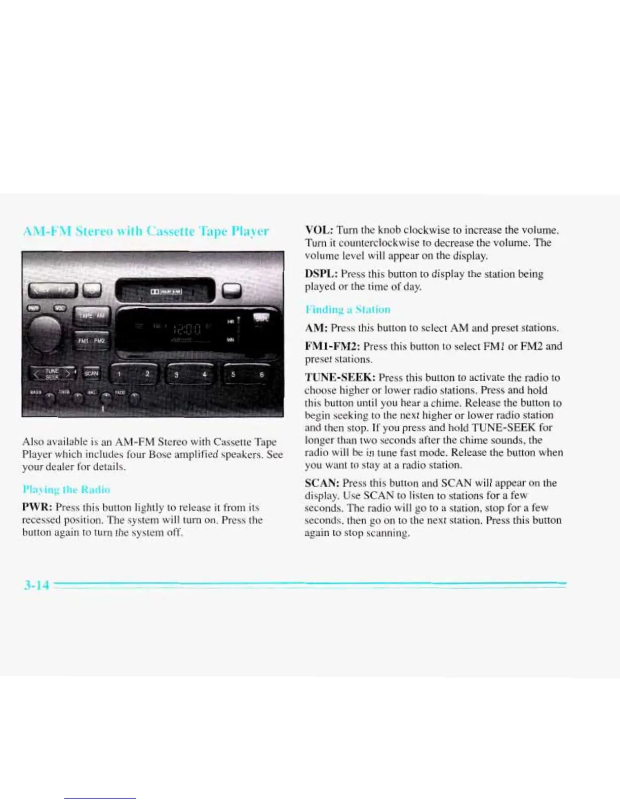 choose higher or lower radio stations. Press and hold