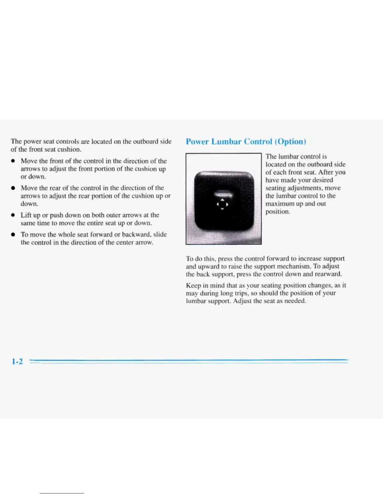 The power seat controls are located on the outboard side