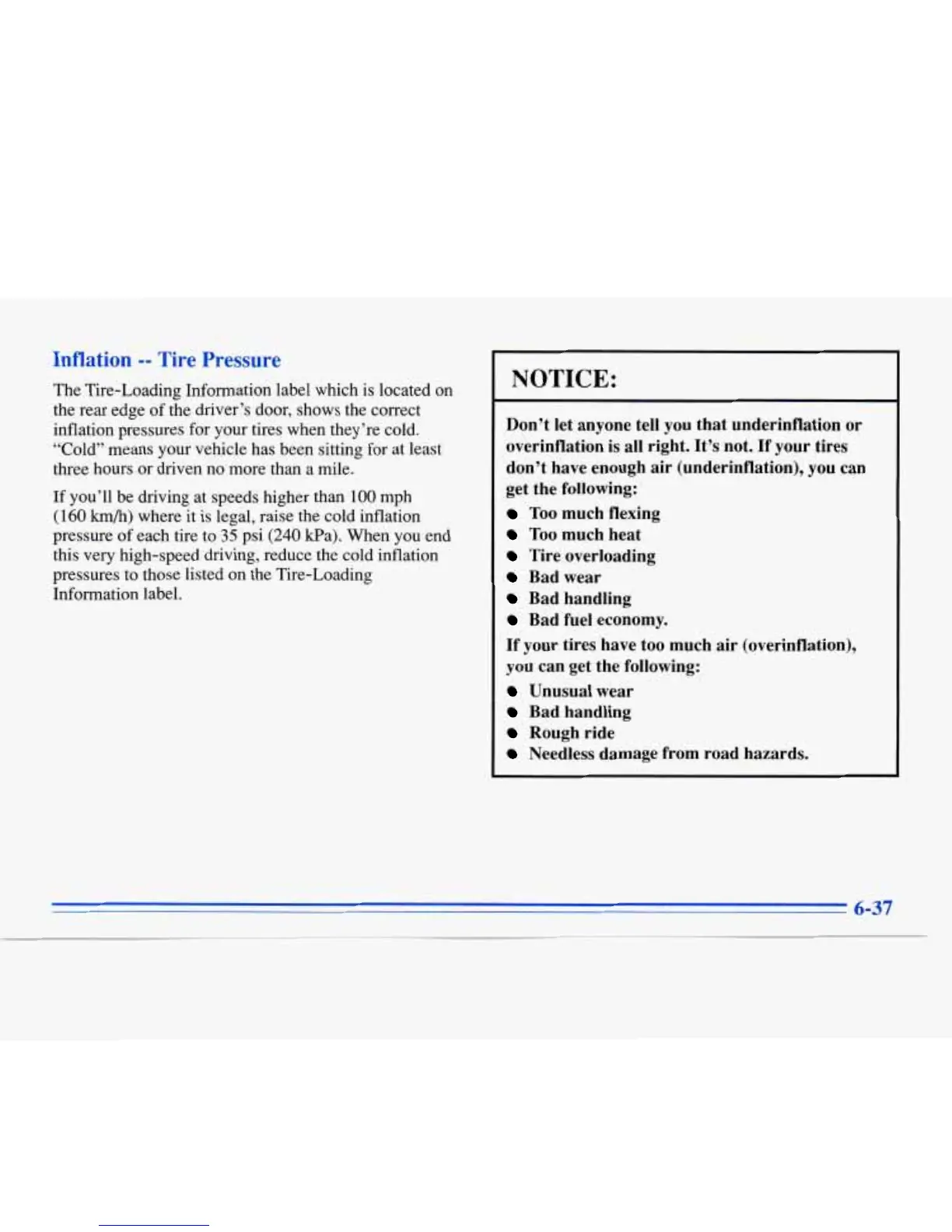 pressures to those listed on the Tire-Loading