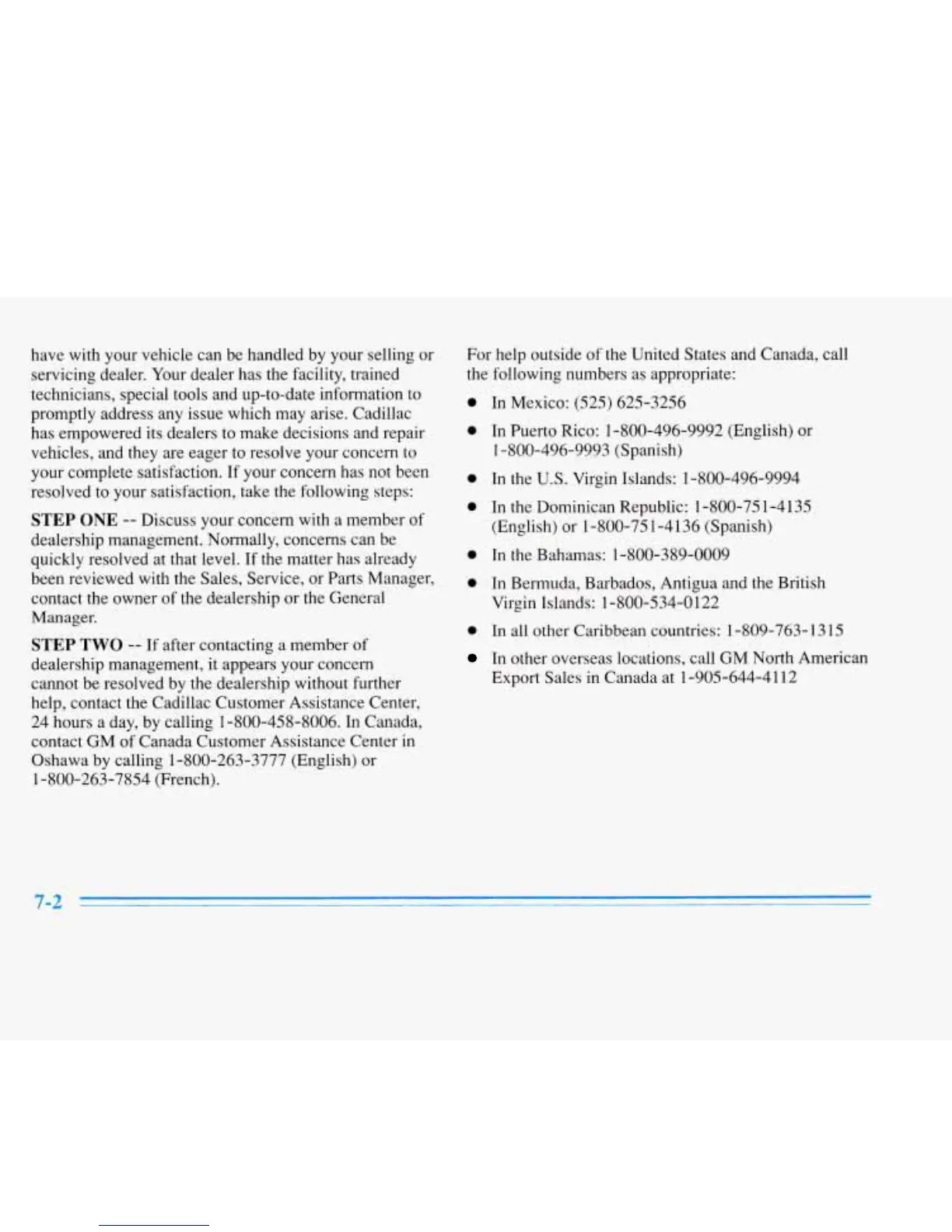In other overseas locations, call GM North American