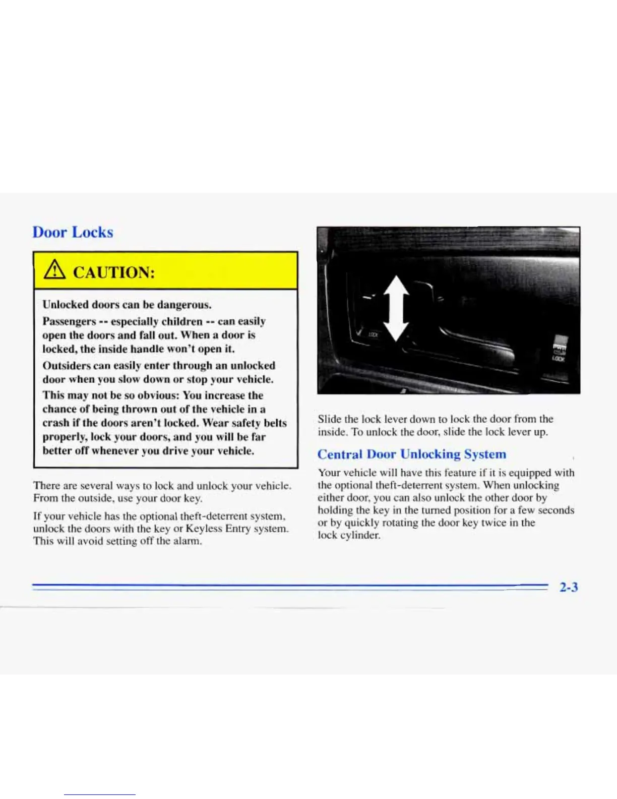 unlock the door, slide the lock lever up.