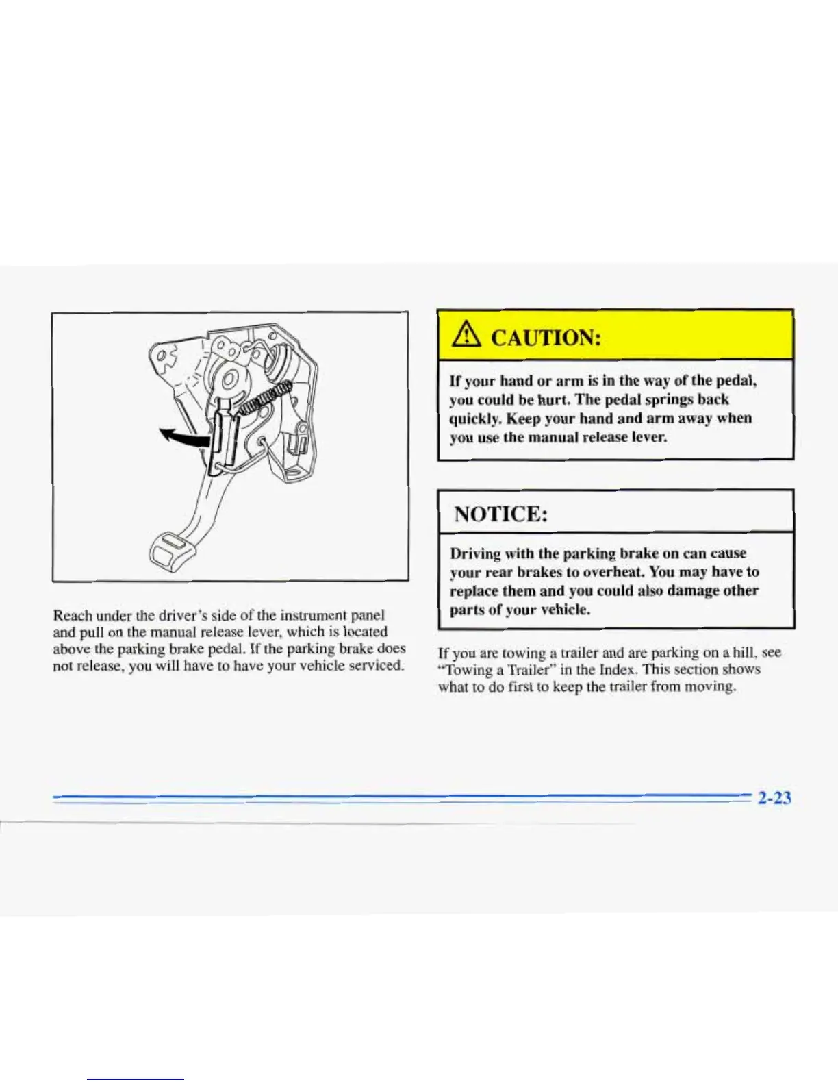 above the parking brake pedal. If the parking brake does