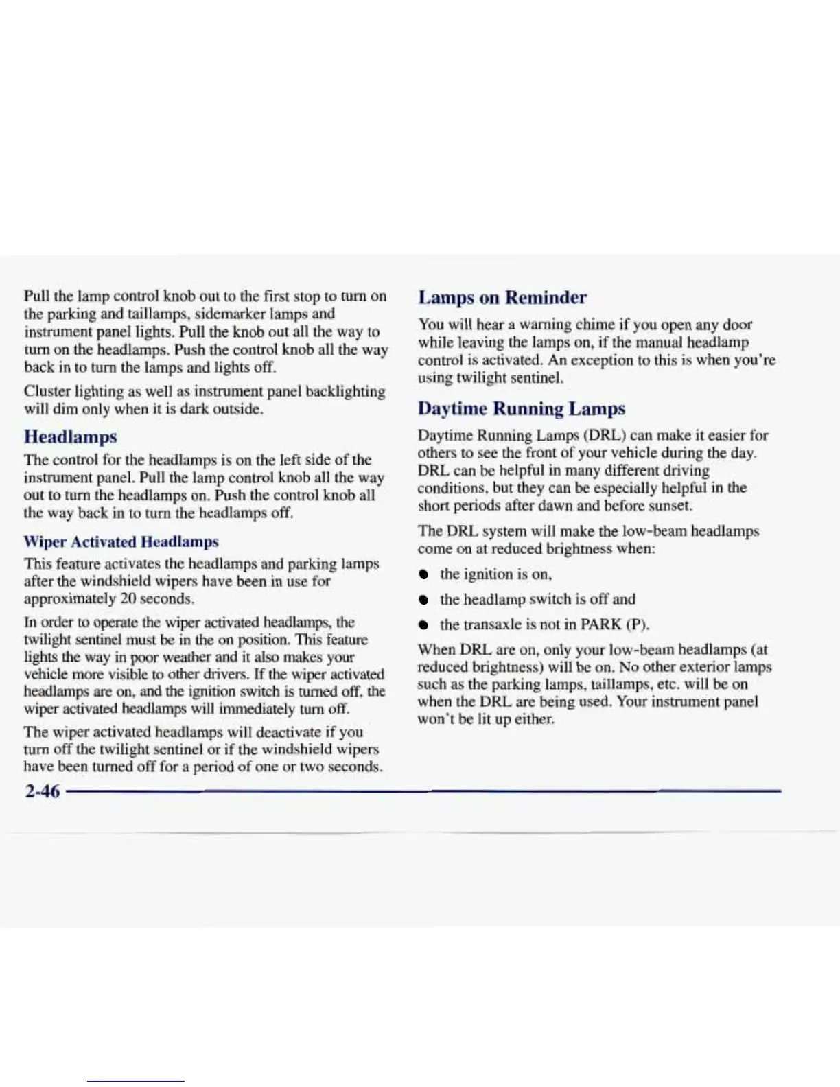 out to turn the headlamps on. Push the control knob all