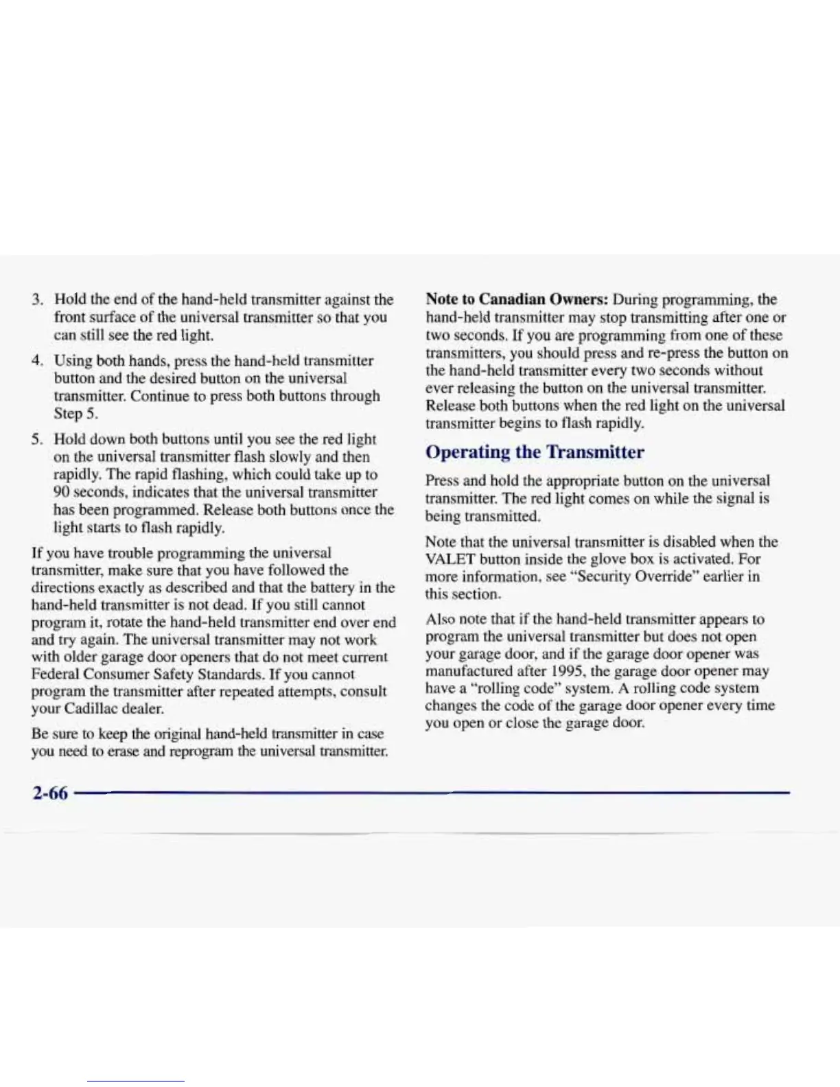 ever releasing the button on the universal transmitter.