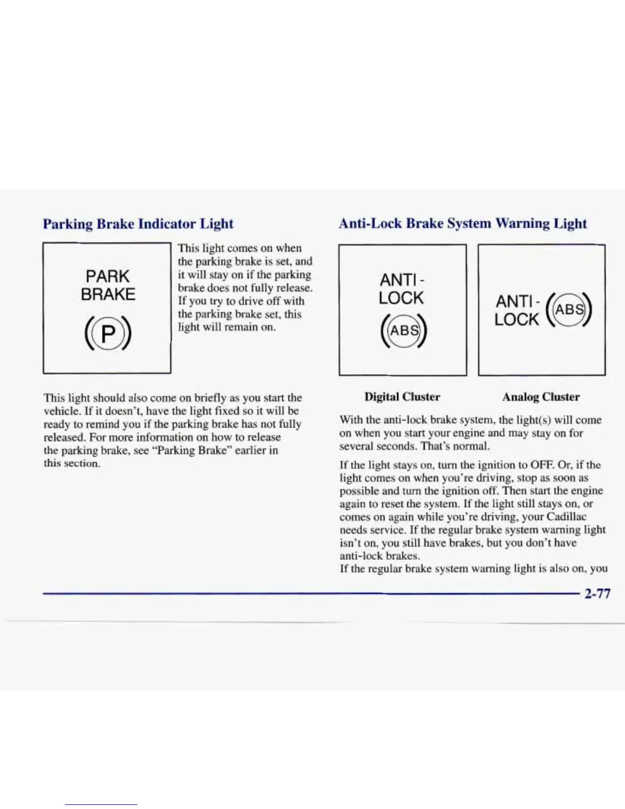Parkine Brake Indicator Light