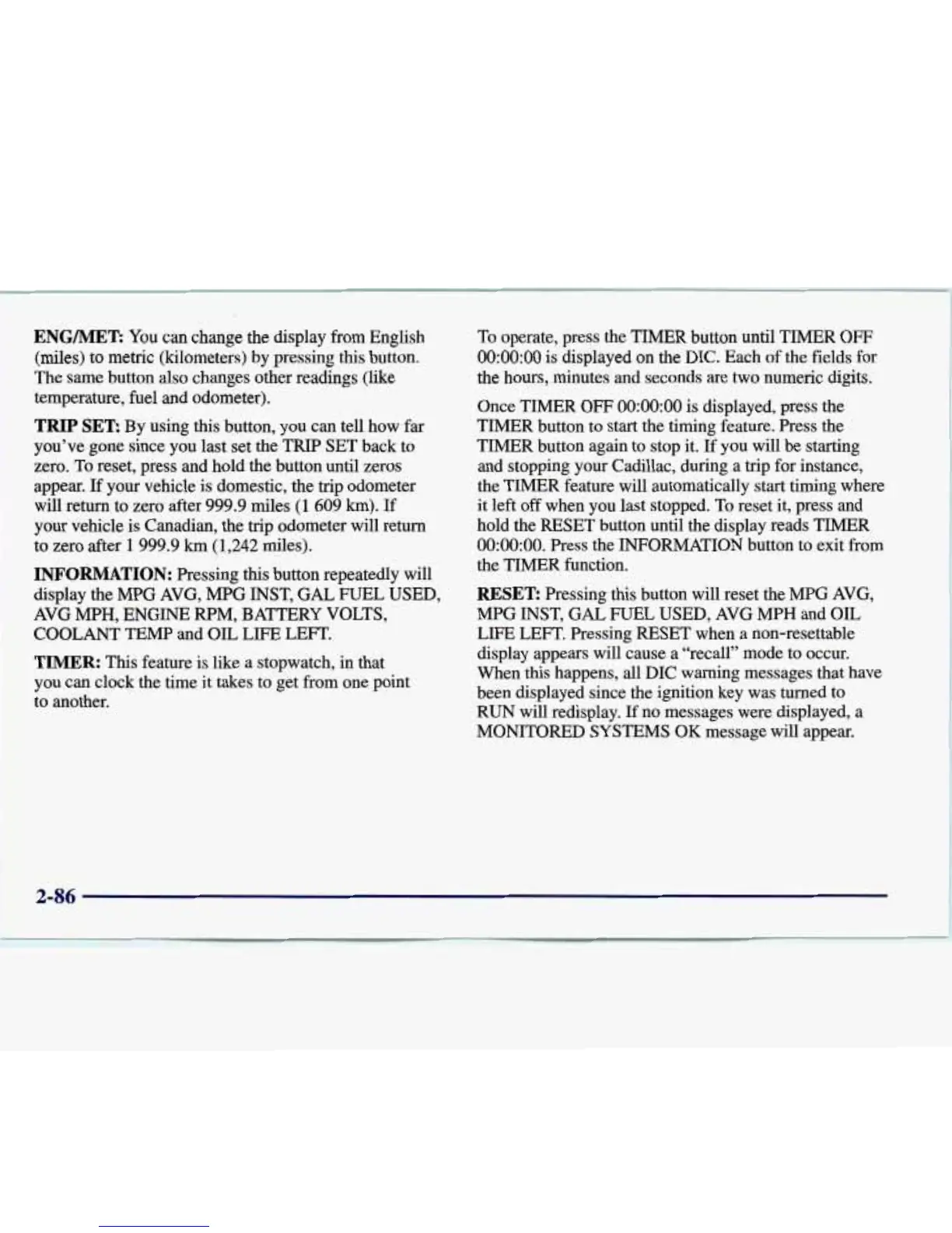 Pressing this button will reset the MPG