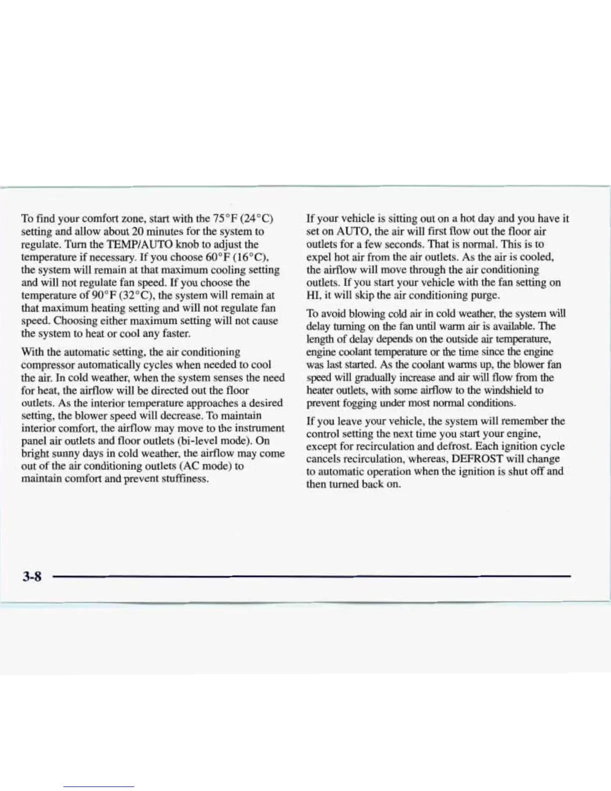 except for recirculation and defrost. Each ignition cycle