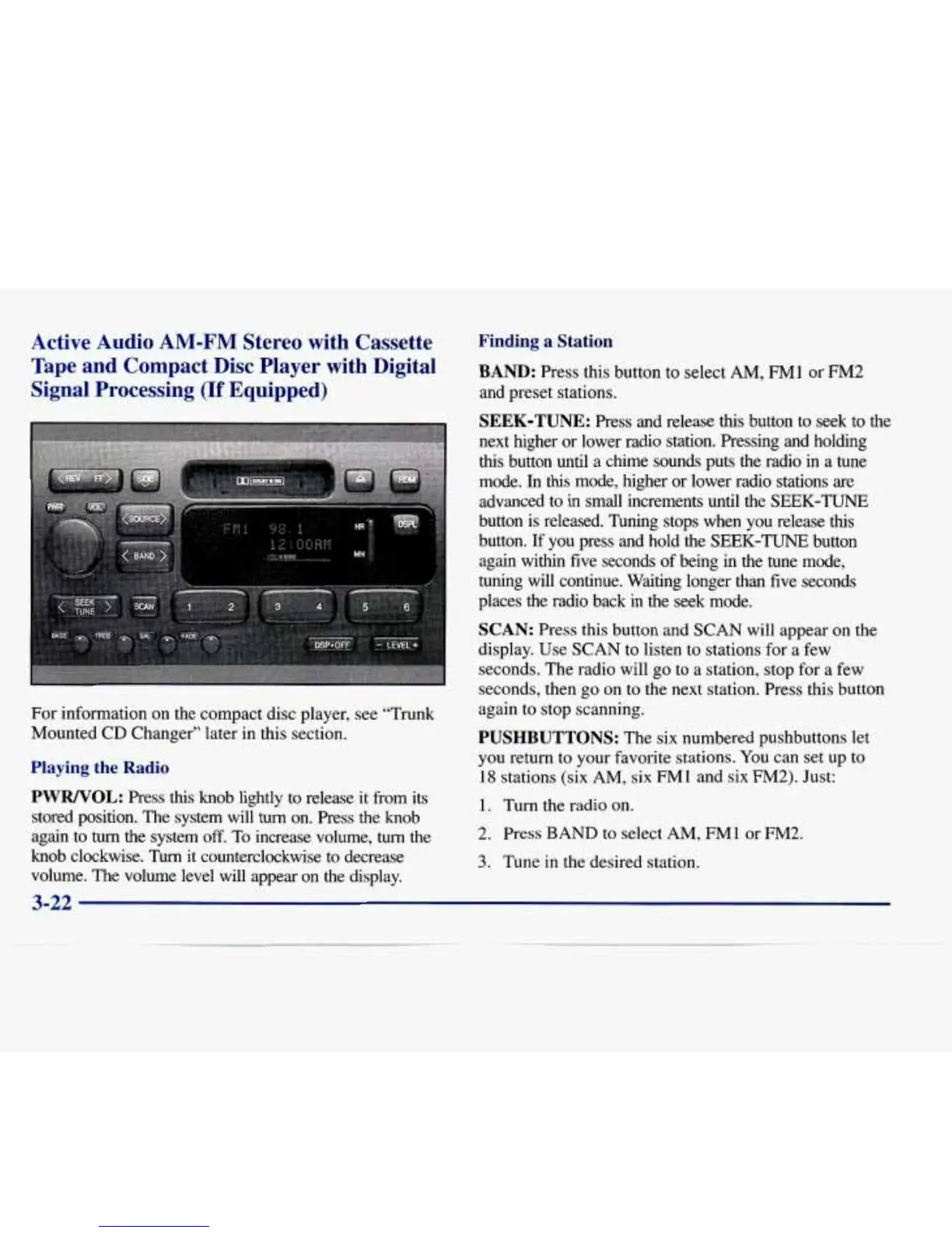 next higher or lower radio station. Pressing and holding
