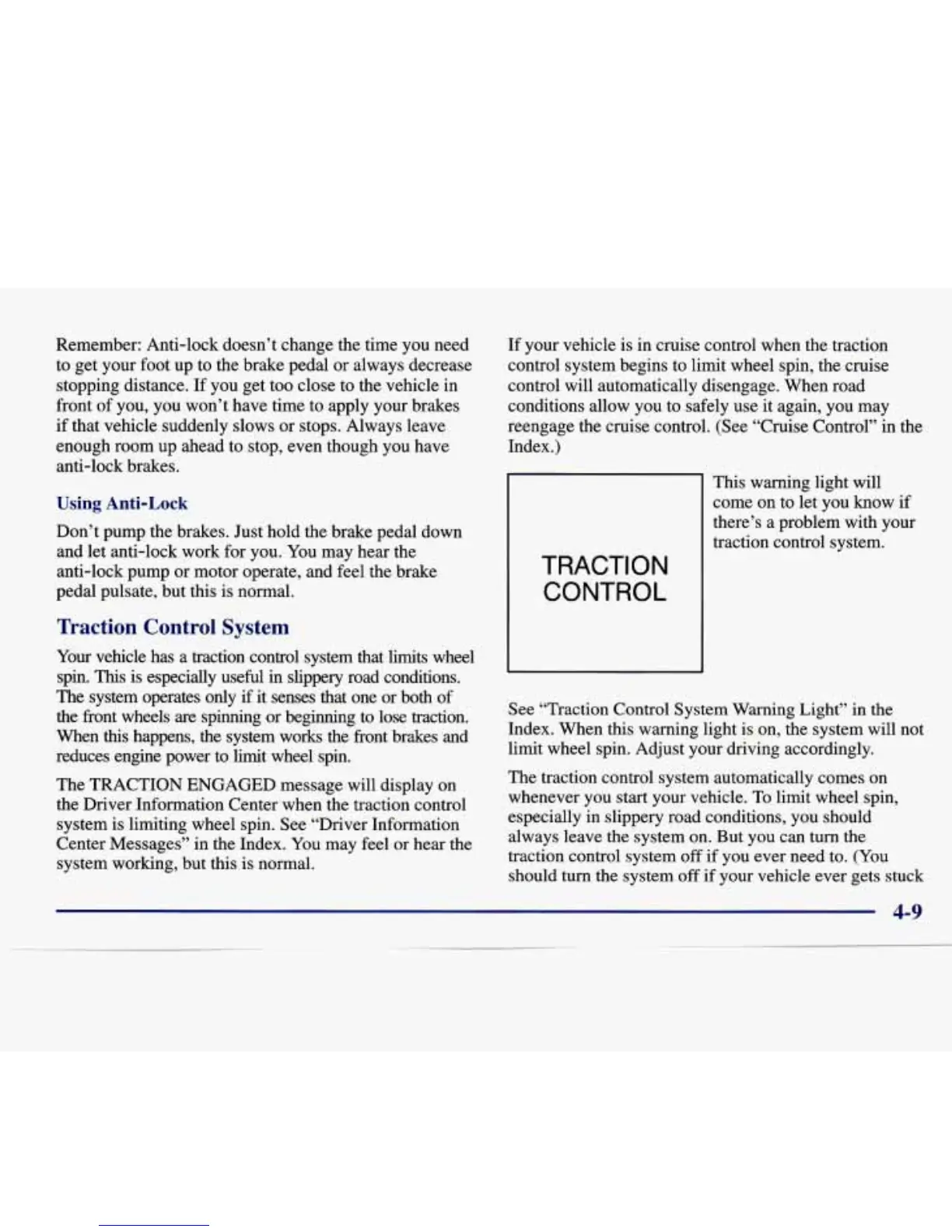 See “Traction Control System Warning Light”