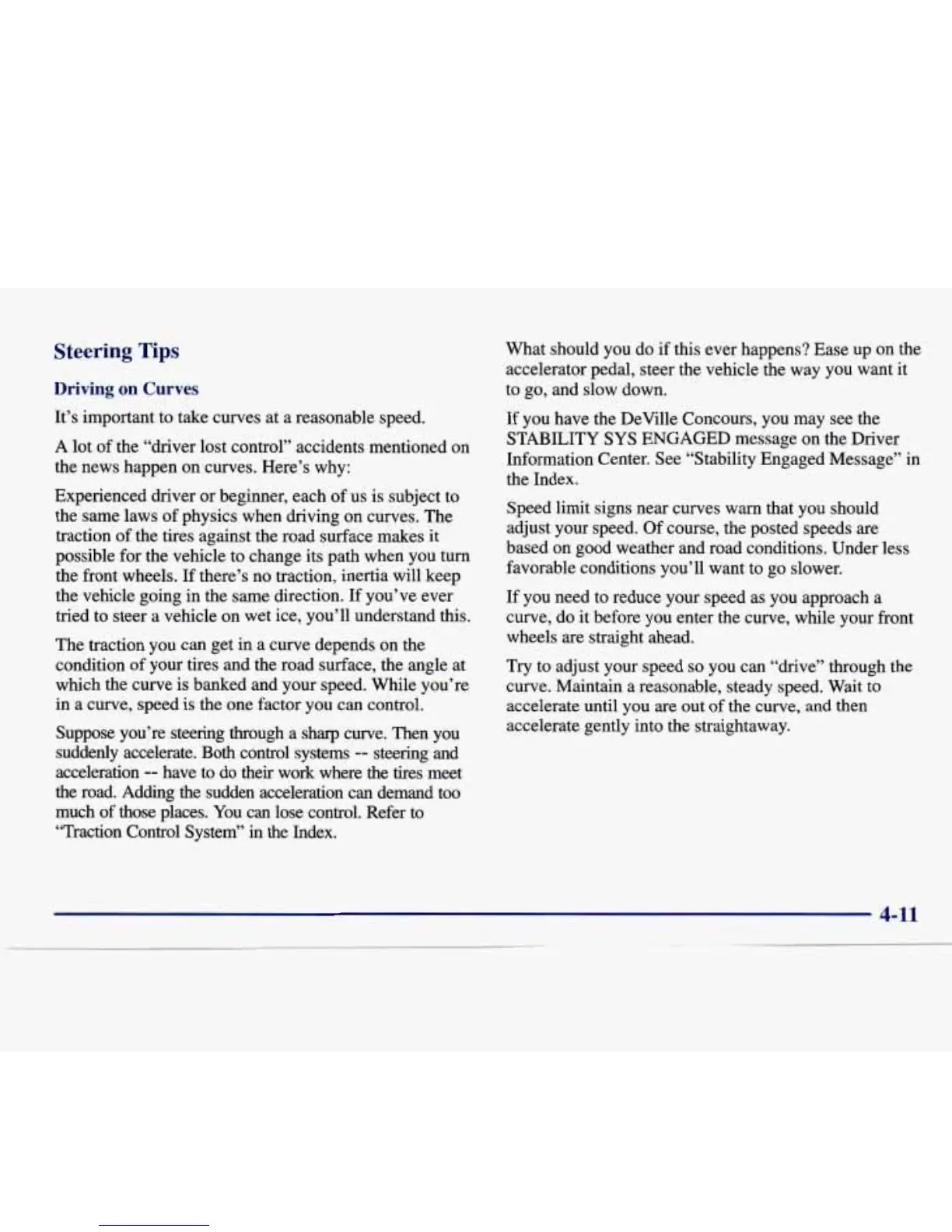 curve. Maintain a reasonable, steady speed. Wait to