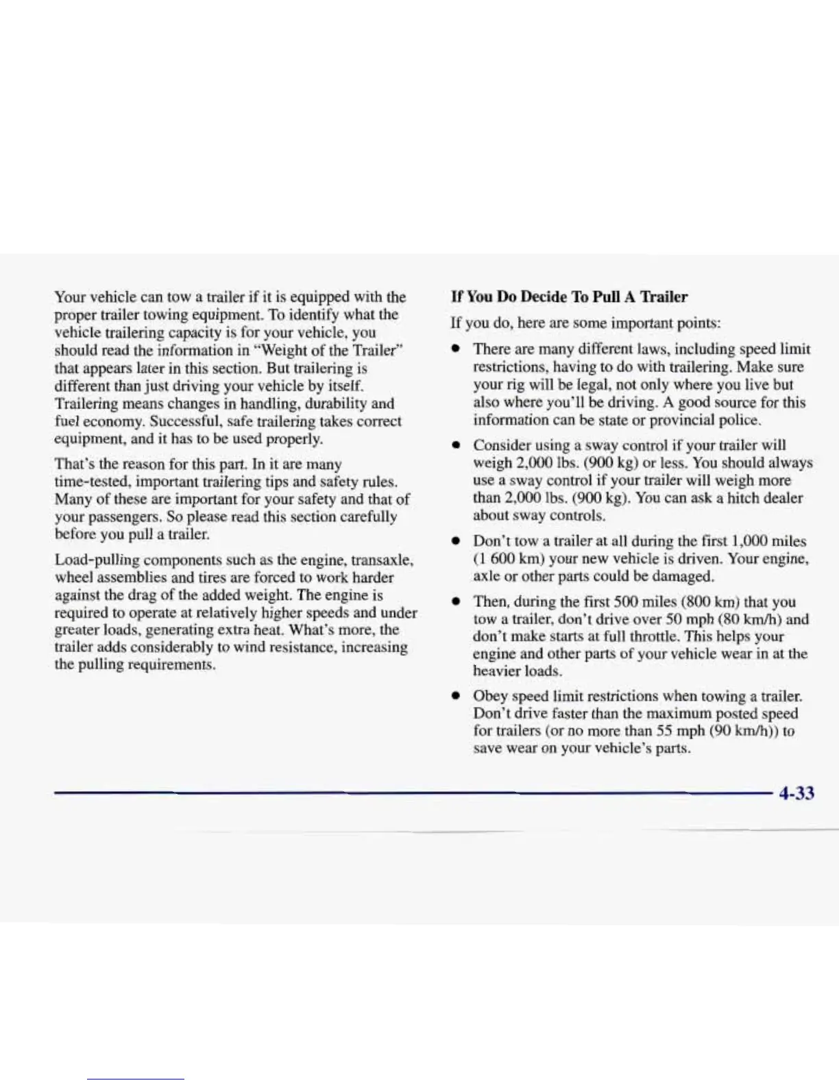 should read the information in “Weight of the Trailer’’