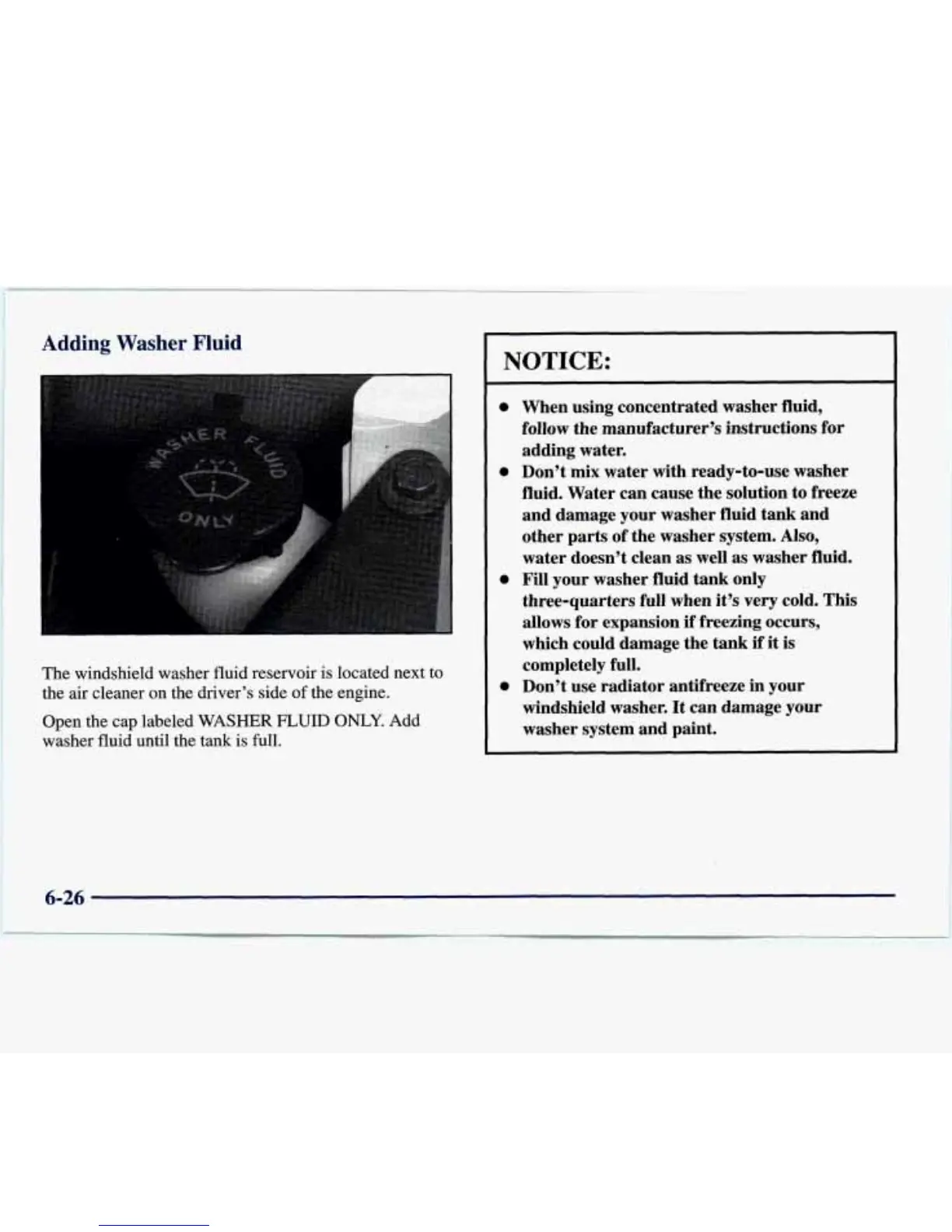 and damage your washer fluid tank and
