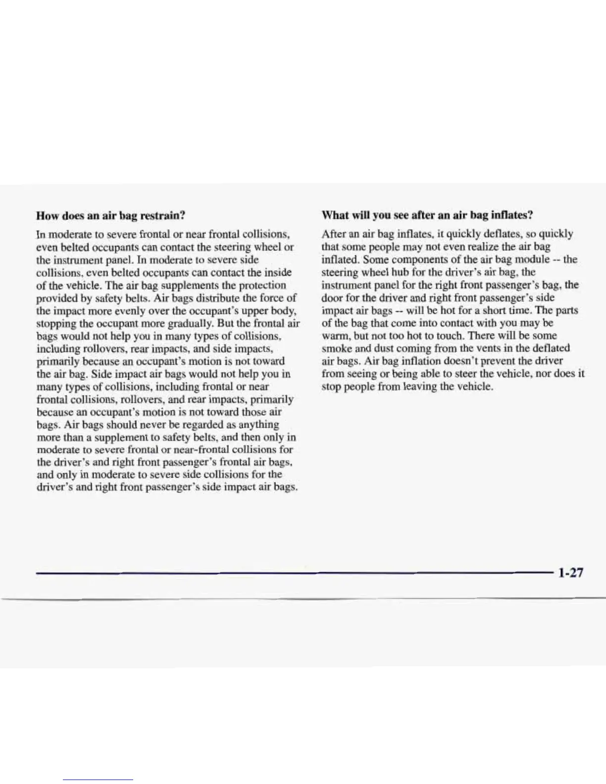 air bags. Air bag inflation doesn’t prevent the driver